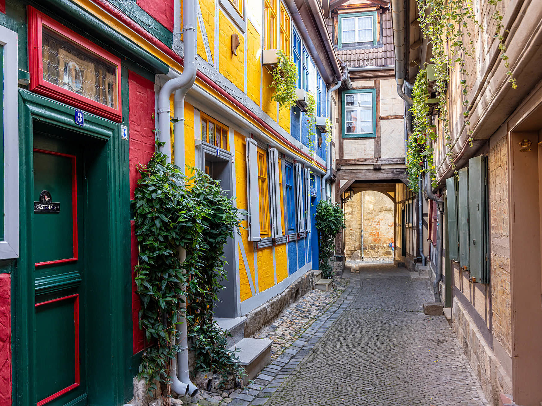Die größte Sehenswürdigkeit Quedlinburgs ist jedoch die Stadt selbst. Auf etwa 90 Hektar Fläche reihen sich über 1.300 malerische Fachwerkhäuser aneinander. An den oft reich verzierten Fassaden lässt sich die Entwicklung dieser einzigartigen Bauweise über acht Jahrhunderte hinweg nachvollziehen.